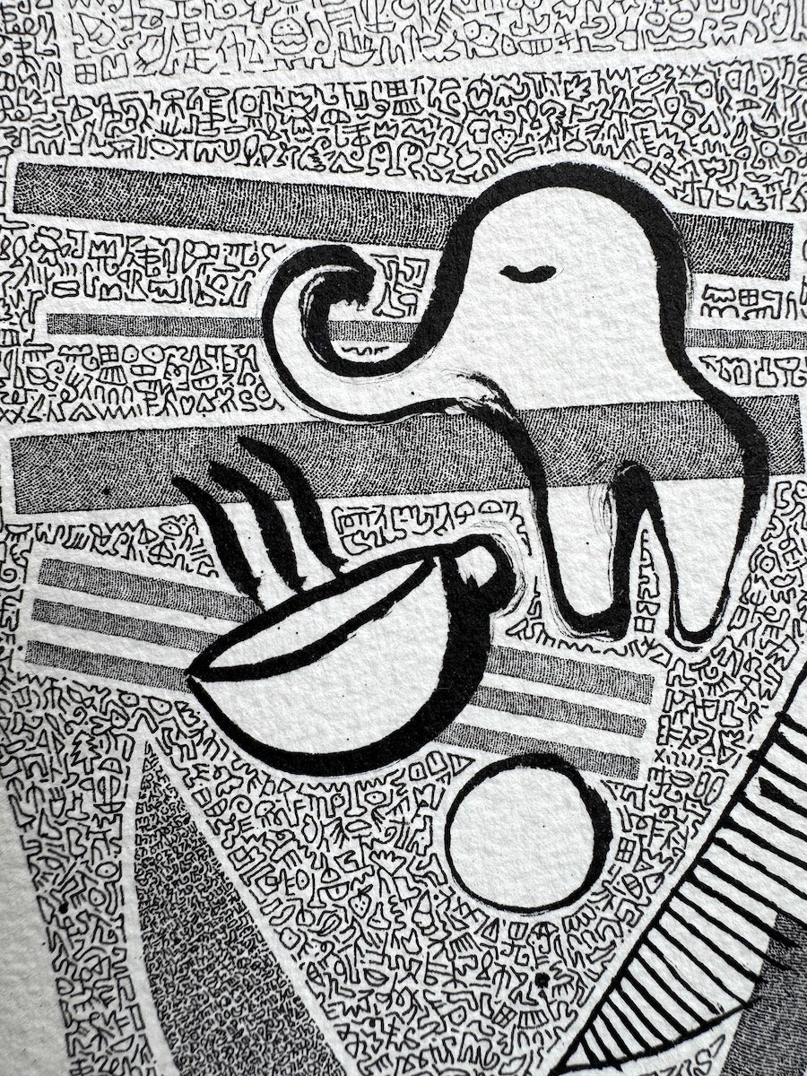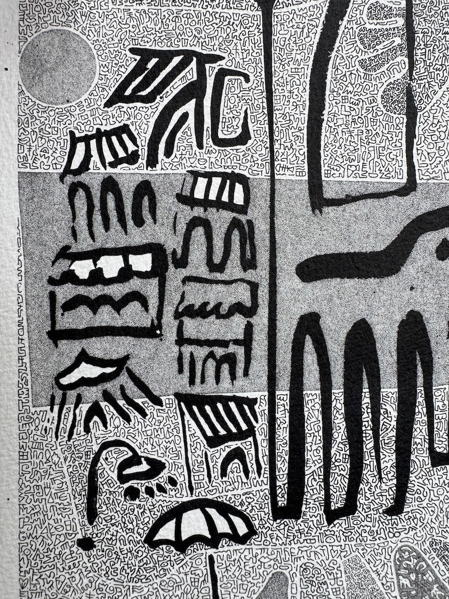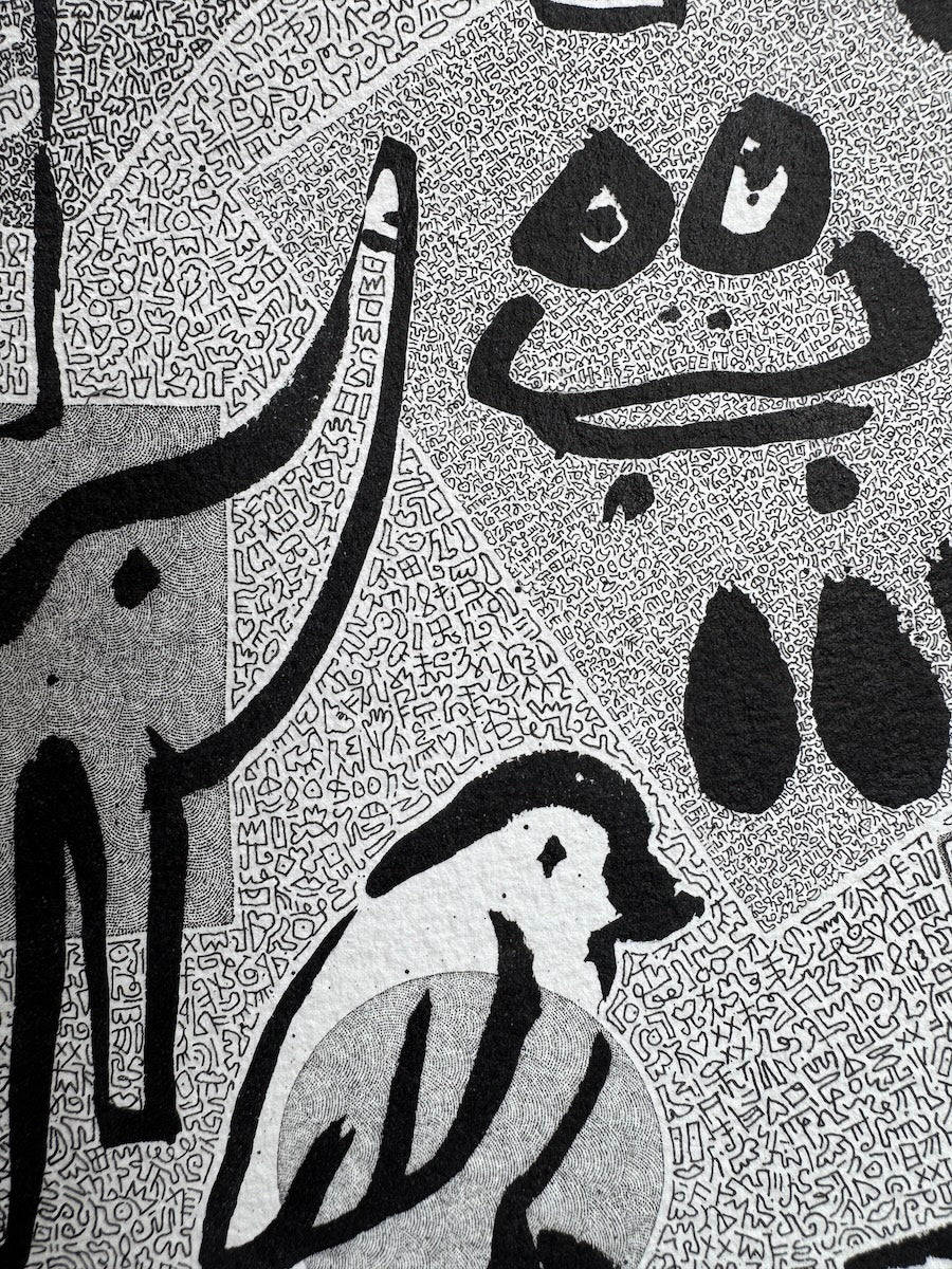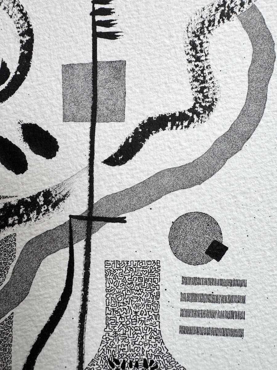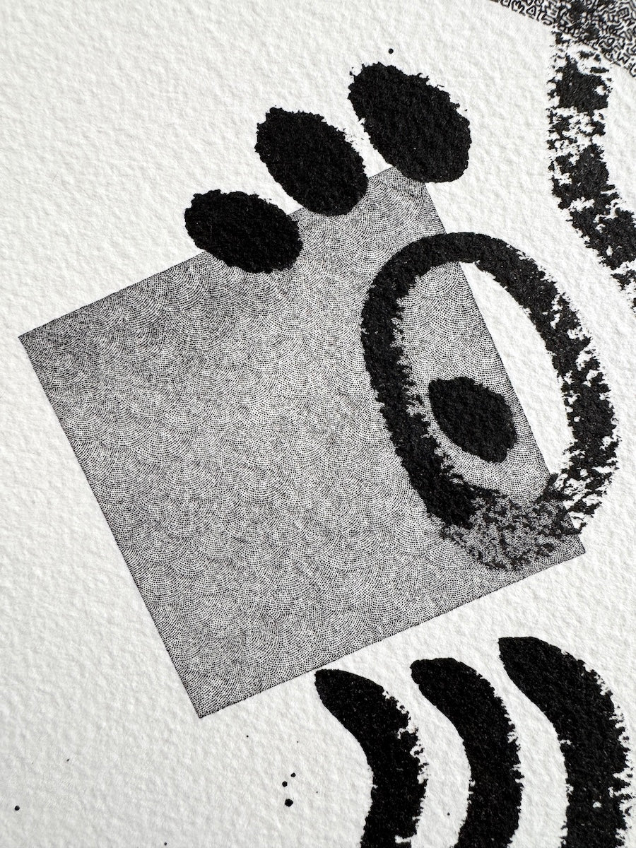 I'm Roberta Boffo! My art showcases a unique use of ink on paper and acrylic on canvas. I work intuitively with calligraphy brushes of different sizes and fine liners. I combine my motif-making technique and the use of line, shapes and forms with stippling to create or deprive of contrast, achieving highly detailed and intricate compositions that are monochromatic; the result of a radical technique with black and white as the main driving colors and the illusion of all the greyscale in between.