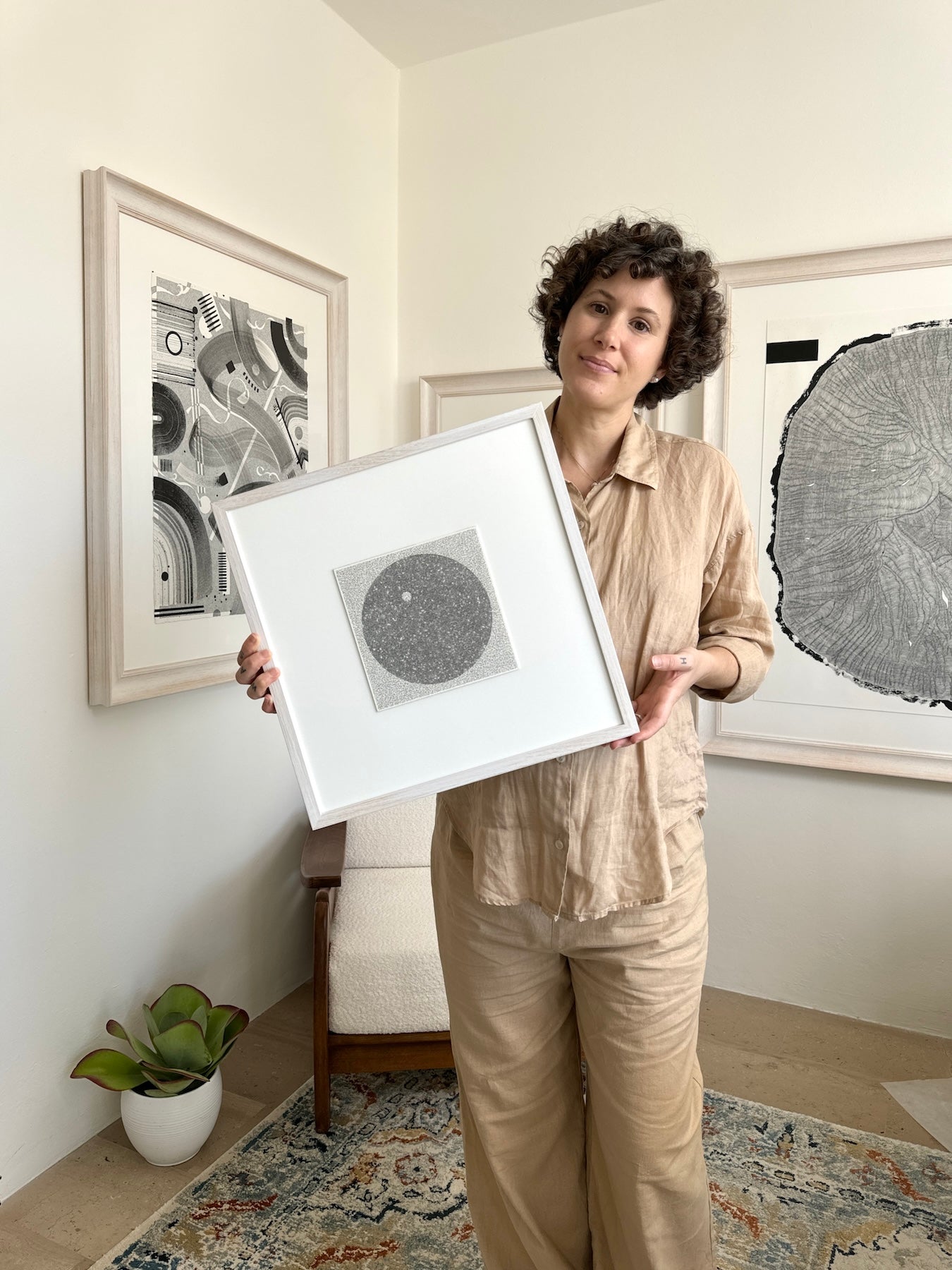 I step into my artworks and leave the rest of the world behind. I enjoy a process that is meditative and intuitive, where the art comes to me spontaneously, naturally and it translates organically into shapes and compositions. Whether by the use of lines, shapes or dots, my art is a an act of surrender, of abandonment of oneself to the soothing and self-annihilating power of infinite repetition. It is an harmonious and balanced dance between the art of letting go and the intentionality of discipline, commitment and pure devotion to serve the gift that is my art.