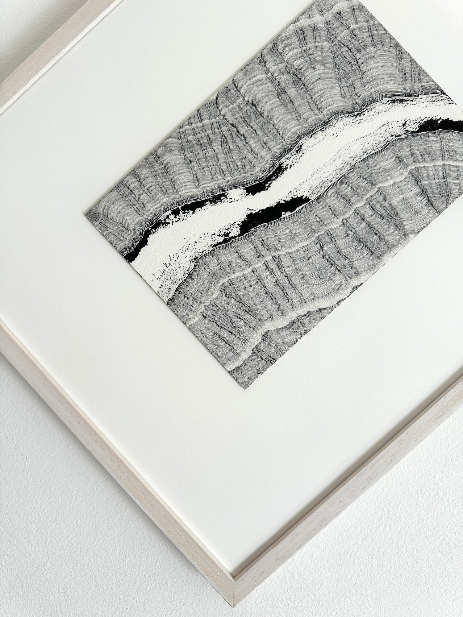 The artwork is framed, slightly floated, in natural wood with archival quality matboard and museum non-reflective glass. This one-of-a-kind original artwork is hand-signed by the Artist and accompanied by a Certificate of Authenticity.