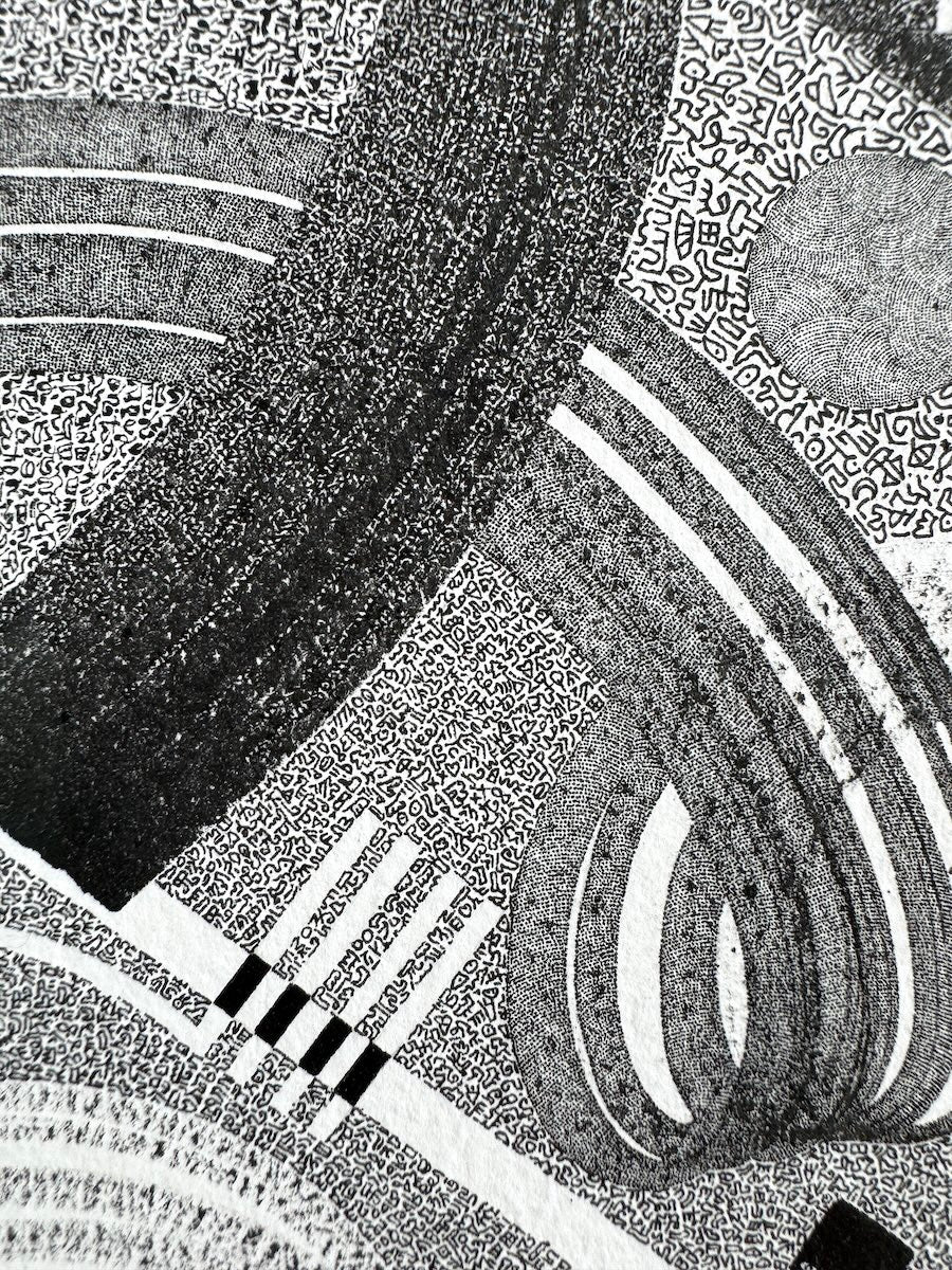 My art has always revolved around the process and the ability to create something remarkable with tools such as ink, pens and brushes on museum-grade paper. It is the challenge of working with simple materials to achieve mastery one of the many driving factors in my art practice. Simplicity through complexity and intricacy. Clarity through organised chaos. Every artwork, whilst connected to the previous and the next, similar in nature and yet different, is unique. It is irreplicable: a distinctive and special journey that flourishes from a never-ending source of love.