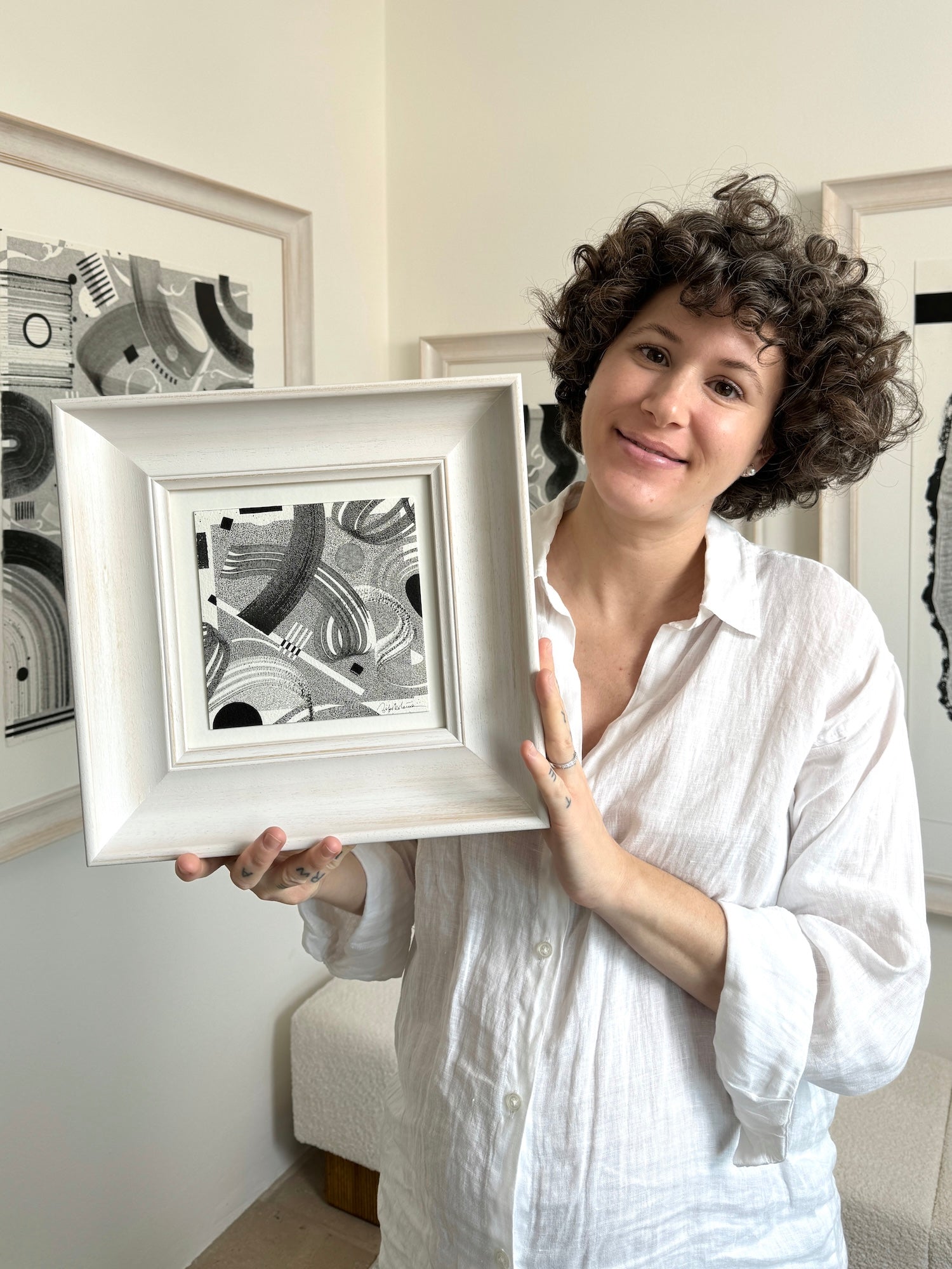 I step into my artworks and leave the rest of the world behind. I enjoy a process that is meditative and intuitive, where the art comes to me spontaneously, naturally and it translates organically into shapes and compositions. Whether by the use of lines, shapes or dots, my art is a an act of surrender, of abandonment of oneself to the soothing and self-annihilating power of infinite repetition. It is an harmonious and balanced dance between the art of letting go and the intentionality of discipline, commitment and pure devotion to serve the gift that is my art.
