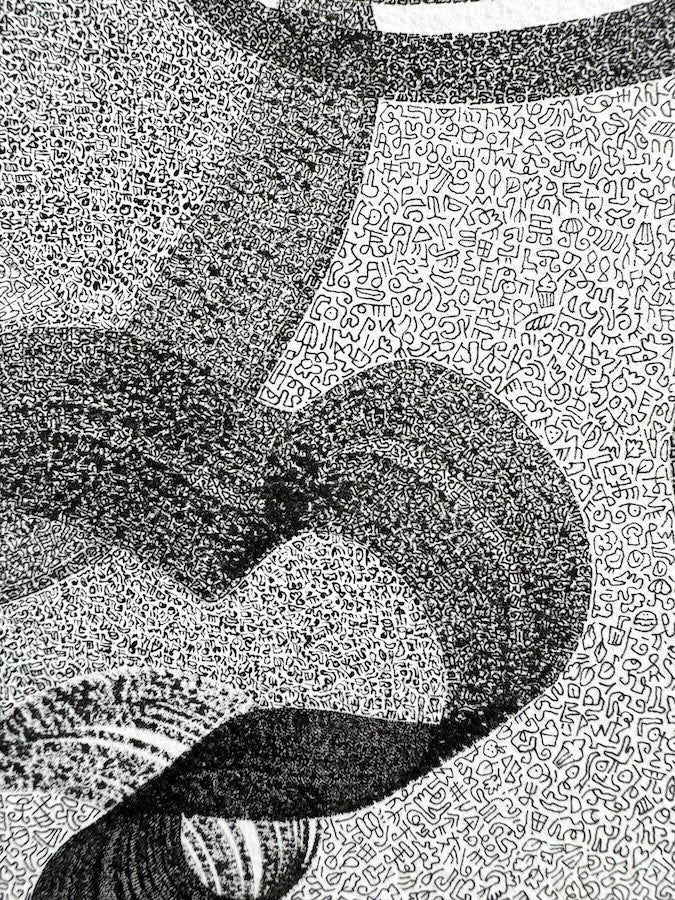 My art has always revolved around the process and the ability to create something remarkable with tools such as ink, pens and brushes on museum-grade paper. It is the challenge of working with simple materials to achieve mastery one of the many driving factors in my art practice. Simplicity through complexity and intricacy. Clarity through organised chaos. Every artwork, whilst connected to the previous and the next, similar in nature and yet different, is unique. It is irreplicable: a distinctive and special journey that flourishes from a never-ending source of love.