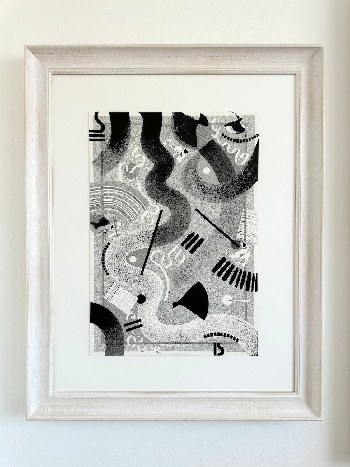 The artwork is framed, slightly floated, in natural wood with archival quality matboard and museum non-reflective glass. This one-of-a-kind original artwork is hand-signed by the Artist and accompanied by a Certificate of Authenticity.