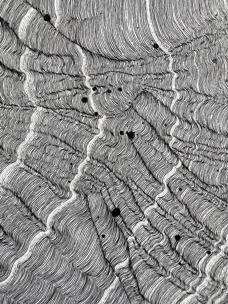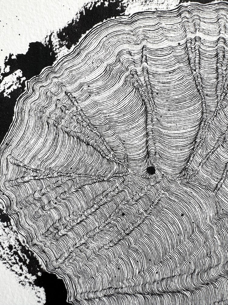 I'm Roberta Boffo! My art showcases a unique use of ink on paper and acrylic on canvas. I work intuitively with calligraphy brushes of different sizes and fine liners. I combine my motif-making technique and the use of line, shapes and forms with stippling to create or deprive of contrast, achieving highly detailed and intricate compositions that are monochromatic; the result of a radical technique with black and white as the main driving colors and the illusion of all the greyscale in between.