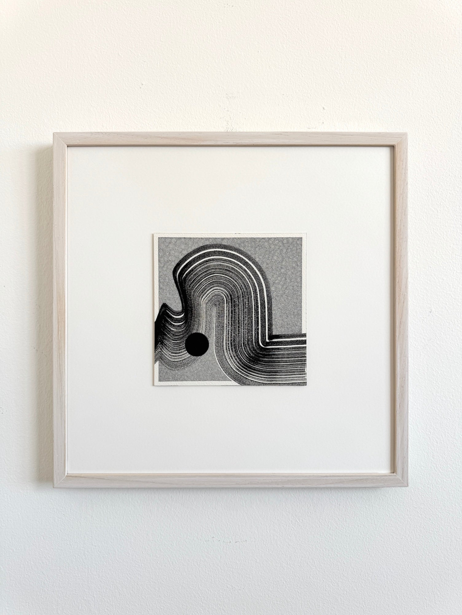 The artwork is framed, slightly floated, in natural wood with archival quality matboard and museum non-reflective glass. This one-of-a-kind original artwork is hand-signed by the Artist and accompanied by a Certificate of Authenticity.