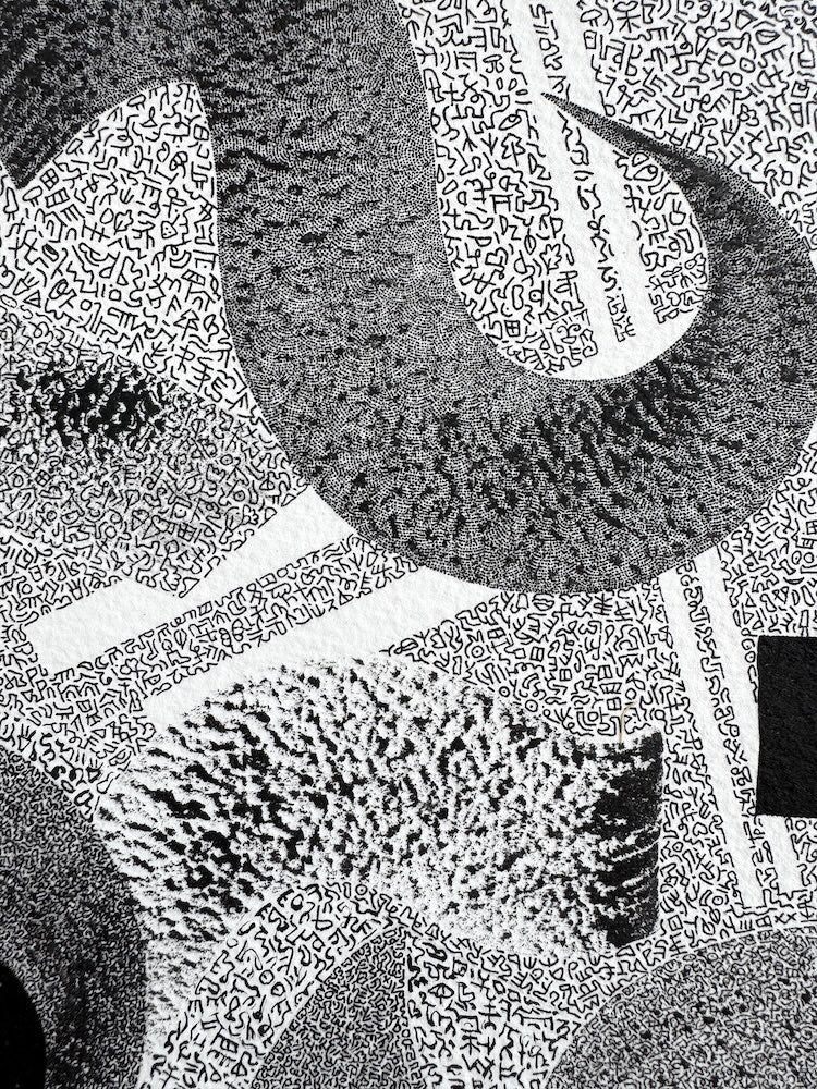 My art has always revolved around the process and the ability to create something remarkable with tools such as ink, pens and brushes on museum-grade paper. It is the challenge of working with simple materials to achieve mastery one of the many driving factors in my art practice. Simplicity through complexity and intricacy. Clarity through organised chaos. Every artwork, whilst connected to the previous and the next, similar in nature and yet different, is unique. It is irreplicable: a distinctive and special journey that flourishes from a never-ending source of love.