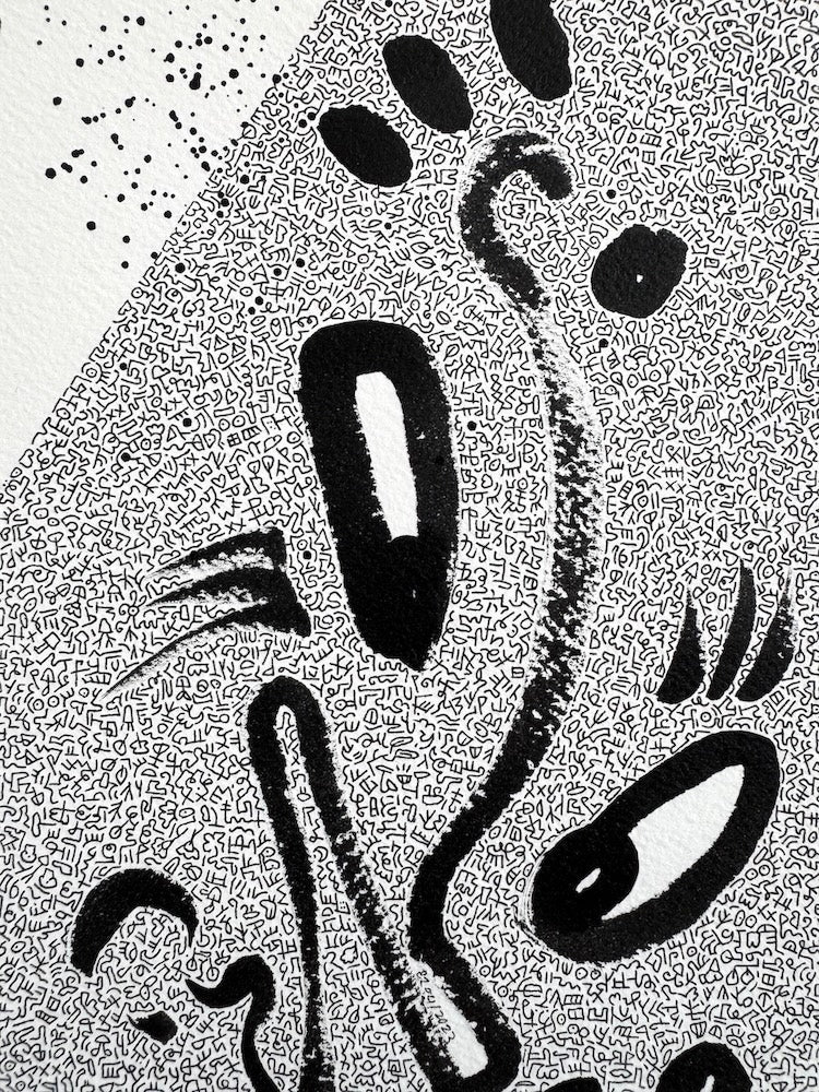 My art has always revolved around the process and the ability to create something remarkable with tools such as ink, pens and brushes on museum-grade paper. It is the challenge of working with simple materials to achieve mastery one of the many driving factors in my art practice. Simplicity through complexity and intricacy. Clarity through organised chaos. Every artwork, whilst connected to the previous and the next, similar in nature and yet different, is unique. It is irreplicable: a distinctive and special journey that flourishes from a never-ending source of love.