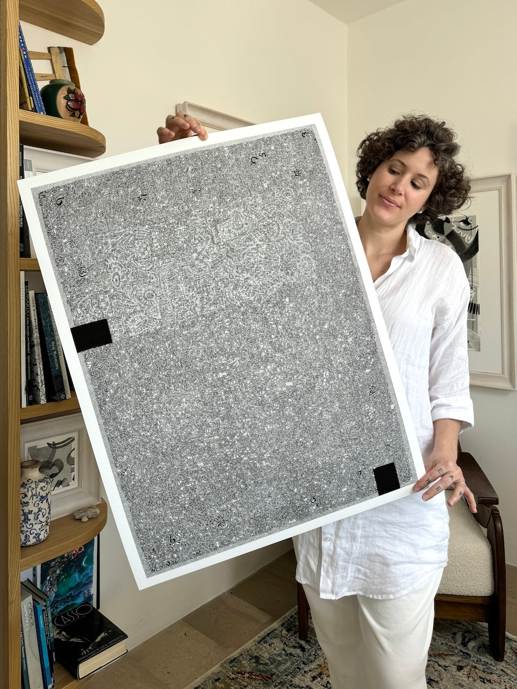 When it comes to fine art printing, not only capturing all the details and textures of my art, but also its longevity are of the utmost importance, so that any collector can experience all the beauty of their print which is as faithful and respectful to the original artwork as possible. To this end we use archival, museum-grade fine art printing paper that is extremely age resistant, firm and yet pliable with a weight of 310gsm; it is textured with a matte finish and it is naturally white to enhance and compliment the subtle contrasts and shades that characterise my original art.